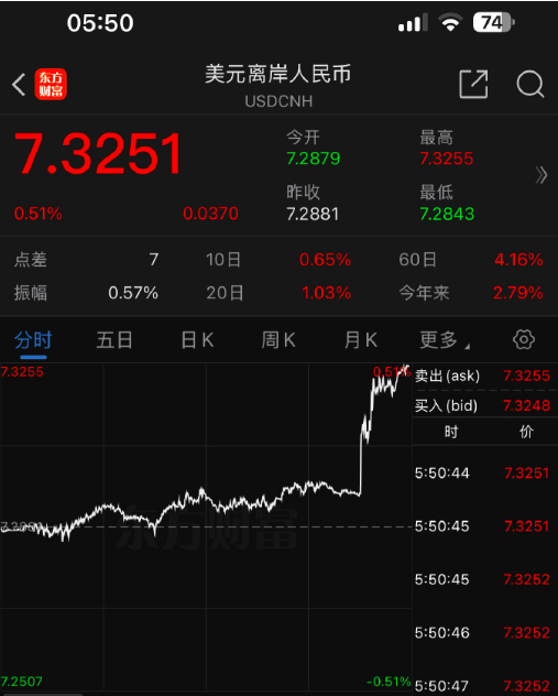 人民币汇率也在大幅贬值。