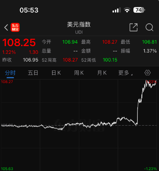 美元指数大涨,黄金大跌