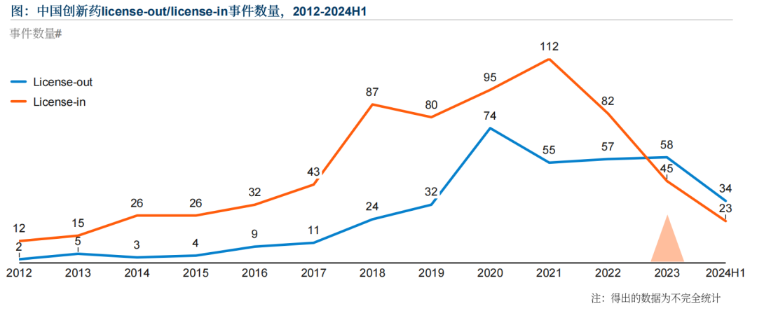 此外,中国创新药企的技术水平不断提升,在国际医药行业中扮演的角色愈发重要。2023年,中国创新药license-out数量首次反超license-in数量,显示中国正从生物医药资产的净流入国变成净输出国。这表明中国创新药企的全球竞争力得到了国际市场的认可。