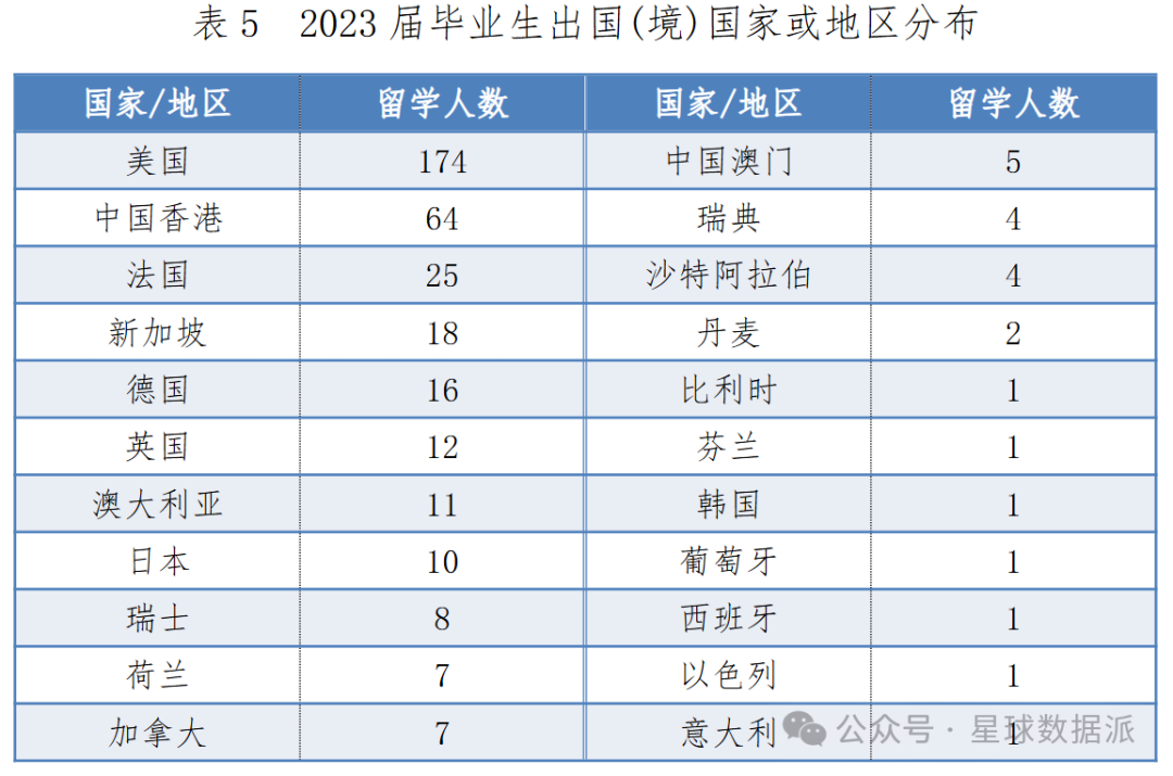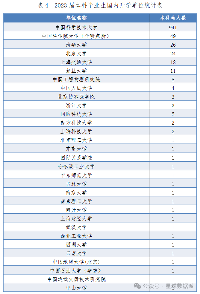 在国内升学的高校分布中,中科大本校成为了最大的受益者,共有941名毕业生选择留在本校继续深造,这一数字较上一年度再创新高,充分展示了中科大在科研和教育领域的深厚底蕴。同时,也有一部分毕业生选择前往清华大学、北京大学、复旦大学、上海交通大学等国内顶尖高校深造,合计人数达到了73人。与此同时也有少数毕业生选择了逆向读研,去了北理工、东南大学、哈尔滨工业大学、吉林大学、华东师范大学等华五之下985高校,但这并不影响中科大在学术深造方面的领先地位。