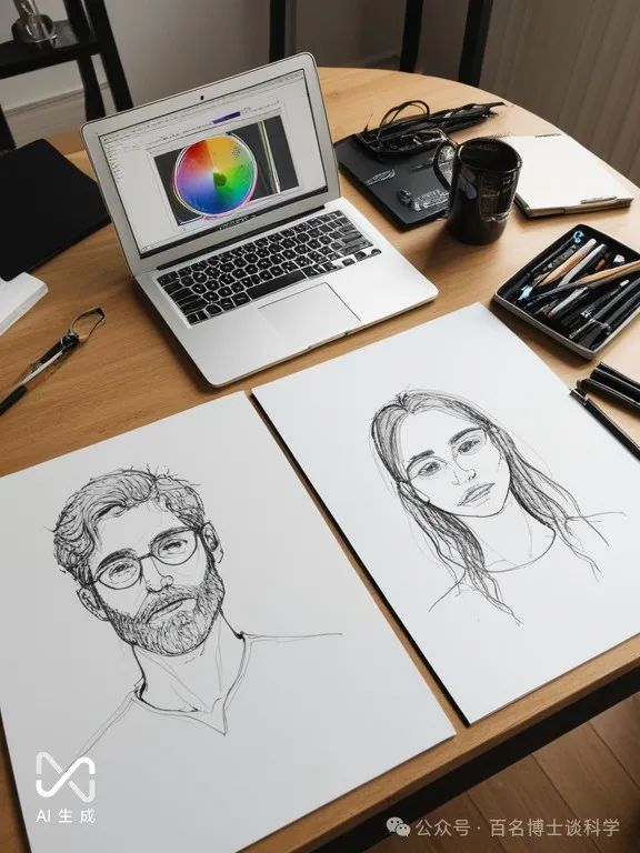 人工智能绘图是与人类语言互动,根据用户的提示语生成图像,再根据用户的提示语修改图像。然后用各种插件对图像进行处理。人类的绘画,则是动作的产物,很难用语言描述绘画。有的画家讲,他的绘画作品有18个层次。画家没有事先规划每个层次如何画,而是前面的绘画动作启发后面的绘画动作,前面的绘画层次启发后面的绘画层次,最后生成完整的绘画作品。传统的绘画软件,也是与人类的动作互动。比如Photoshop绘画软件,如果是加项链,就用手驱动鼠标,将项链图像拉到颈部就行了。颜色有几百万种,也是人驱动鼠标,点击调色板,选择合适的颜色放在图像上。