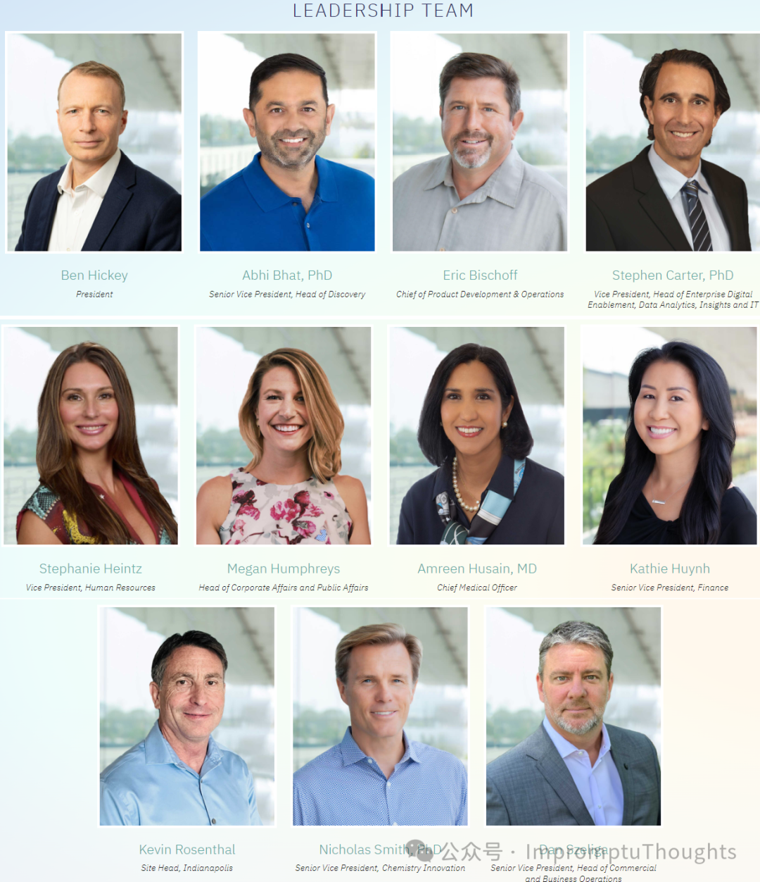在 RayzeBio 的官方网站上,可以看到被 BMS 收购后 RayzeBio 最新的管理团队。目前的被 BMS 派来管 RayzeBio 的 President 为 BMS 收购的另一家公司 Mirati 的 CCO 和 Head of BD,在进入 biotech 前在 BMS 有着长达17年的工作经验。