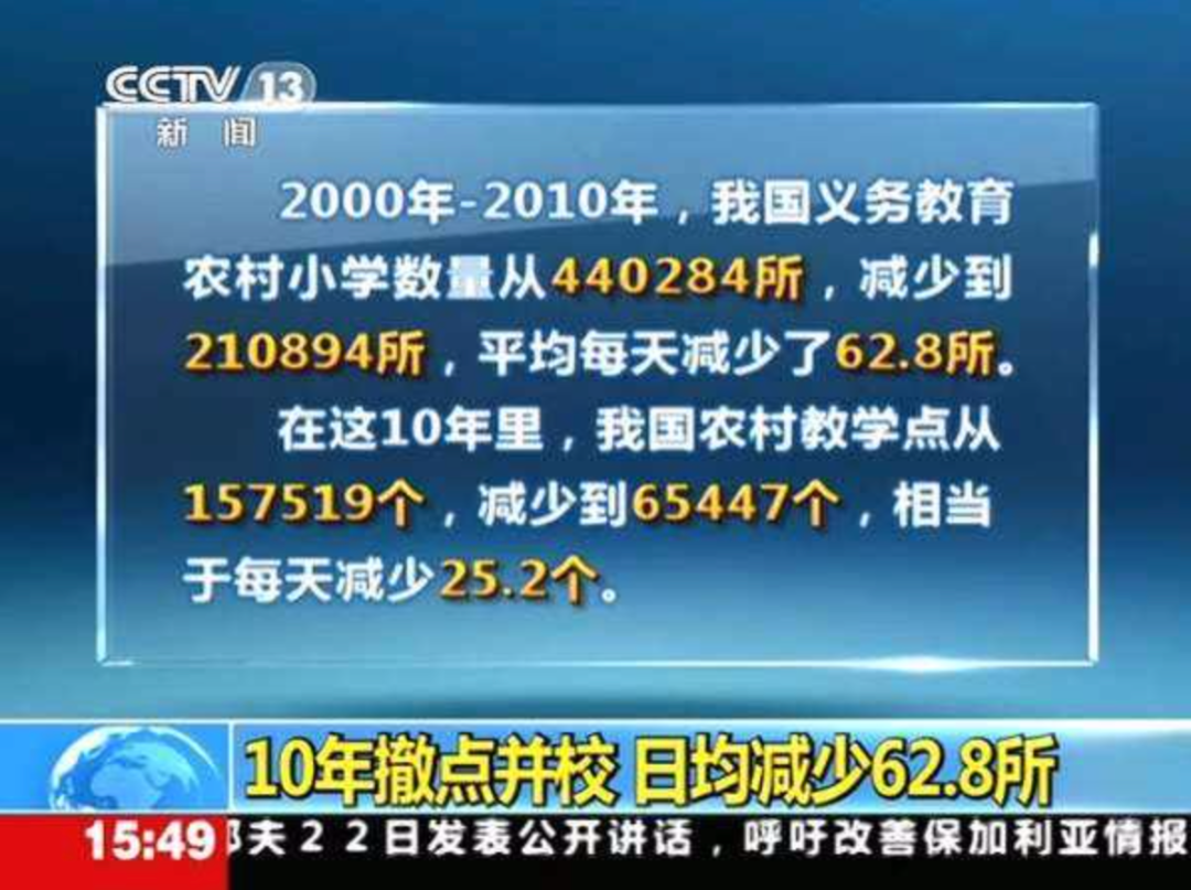 劝学所的这些职能可以说是延续了上百年,在过去九年义务教育普及的过程中,“控辍保学”依然被作为一个需要被严肃对待的任务,很多校长和班主任都要到学生家里去劝孩子来上学,其实这从清朝末年就开始了。基础教育在农村的兴盛、发展或者普及,就是靠着这种意志走到了今天。这样的历史与现实就形成了学校与乡村之间的“粘连关系”,相互包容,也相互守望,来自乡民的支持和监督使得村小的校长和教师都不太敢偷懒和混日子。 我们国家从 1985 年开始,就开始清退代课教师,但 20 年以后还没有清退完毕,就可以看出它背后有一种生生不息的力量。 但是到 2000 年以后,我们国家的经济逐步发展,整个社会都对新千年有着非常美好的向往。国家不再那么穷了,这个时候教育发展的方针就变成了“大国办强教育”。 于是,在 90 年代中后期提出要实施“以县为主”的基础教育管理体制,这项政策在 2000 年以后得以全面落实。 “以县为主”意味着村和镇不再承担任何教育行政职能,所有的村小都由县来管,村民们不再直接负担村小教师的工资等等,当然也就不再参与教师的聘任和资源筹措等职能。 它一方面确实大大减轻或者是全面免除了农民对教育的负担,以县为单位统一来筹措资源,统一来招聘教师,使得村小的教育质量有了一个阶段性的提升。但是,当所有的教育经费由县级政府来统筹的时候,如何发放和配给这笔教育财政的款项就是一个很大的问题。这也造成了当前县域教育的一些“魔幻现状”。 第一个魔幻现状就是撤校并点。这个政策最开始并不叫这个名字,它原本叫“农村中小学布局结构调整政策”,是 2001 年颁布的。这个政策初心是非常好的,但是最后却被执行成了撤校并点,把村小、教学点撤掉,把学生全面集中到镇里,变成中心小学。 如果我们用经济的视角来理解这件事就会很简单了,县政府的一个很大的诉求是要提高办学的规模效益。学校那么分散,很难管理,每一笔钱花到每一个村小,也看不出效益。 因此,对规模效益的追求让撤校并点在乡村地区轰轰烈烈地开展起来,很多村小就在这个过程中消失了。到目前为止,我原来就读过的小学和初中都已经不存在了。 直到 2012 年,国家审计总署开始审计过去这十年到底撤了多少村小。撤掉的村小数量是非常惊人的,甚至有人以每小时为单位,来计算村小消亡的速度。