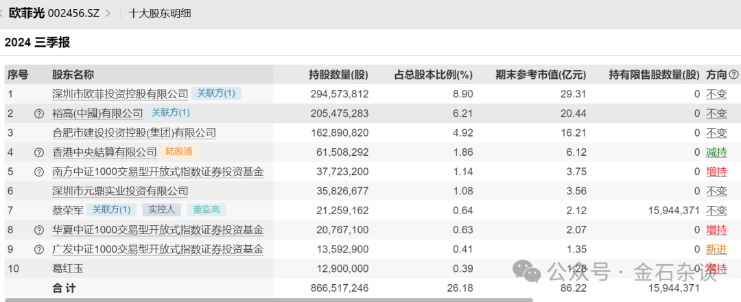 按10月29日14.58元的收盘价,10亿元砸盘6800多万股,这个体量也只有合肥国资了(且砸盘机构地点在安徽),截至三季报,合肥国资持股1.63亿股,本次减持后大约依旧持有1亿股。