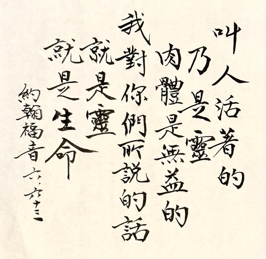 叫人活着的乃是灵,肉体是无益的。我对你们所说的话就是灵,就是生命。