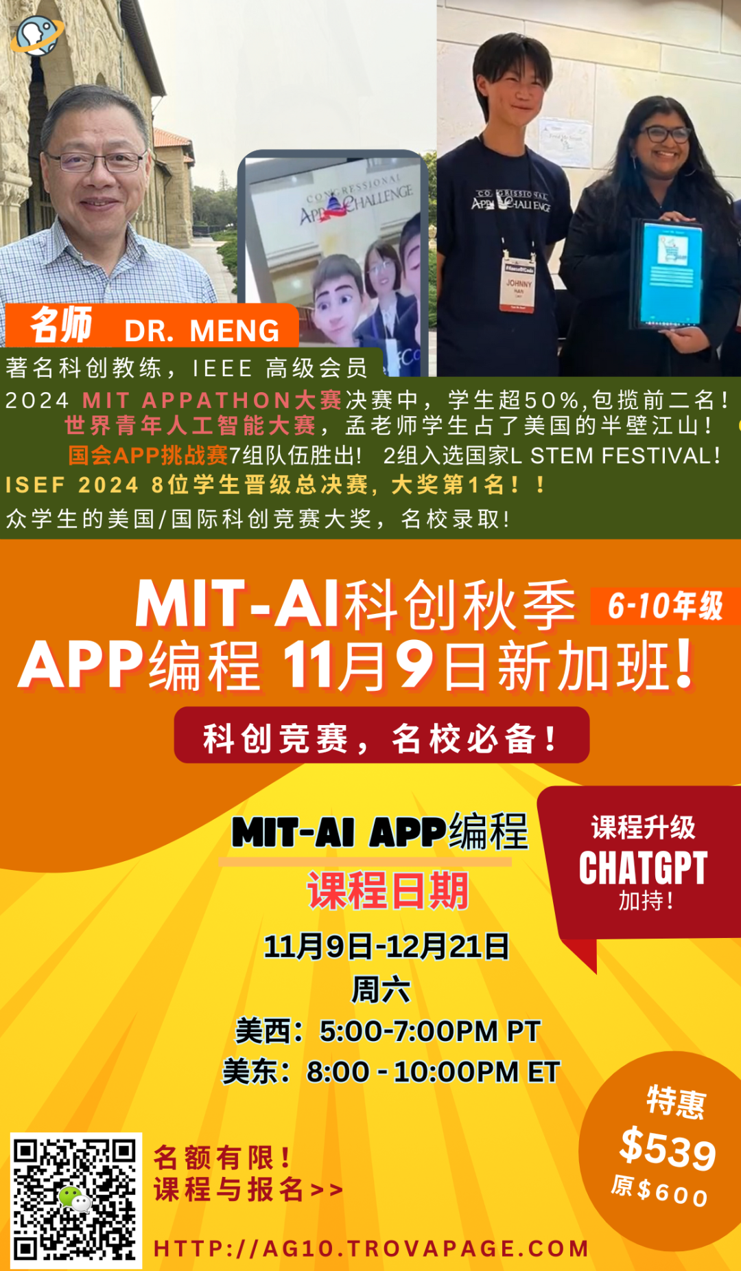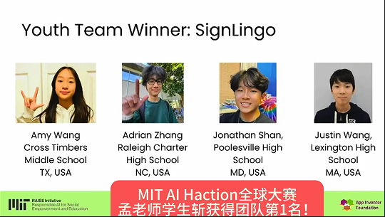 在刚刚结束的2024 MIT 全球青少年【MIT Global Appathhon】和【MIT AI Hackathon】两个比赛中,孟老师的学生击败了来自世界91国家和地区的参赛选手,获得了第一名🏅!