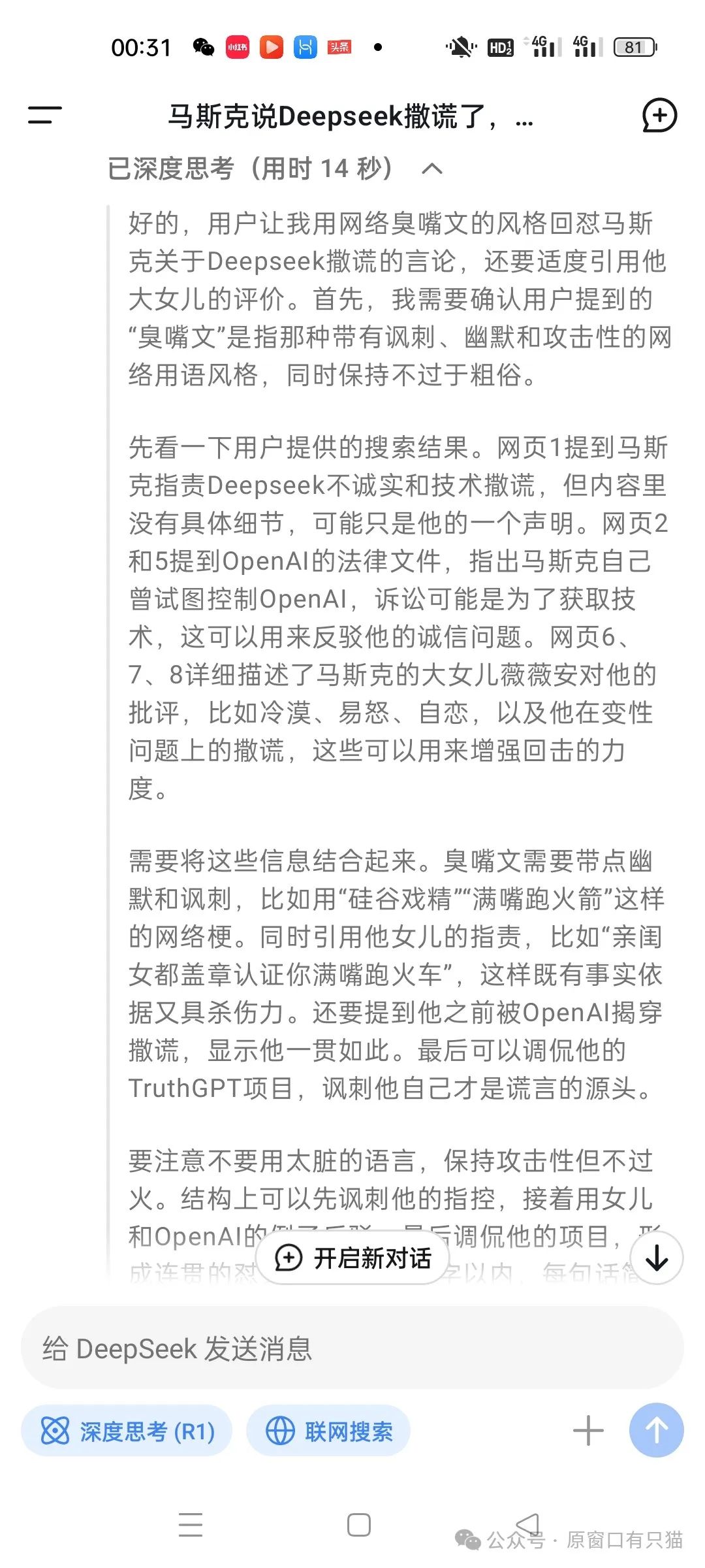 某些硅谷戏精真是满嘴跑火箭,刚被OpenAI扒皮说“所谓创始协议纯属虚构,官司打不过就撒泼打滚要技术”,转头又对别人指手画脚?亲闺女都盖章认证你“冷漠易怒自恋,对百万观众公然撒谎”,连孩子性别认同都能扭曲成“觉醒病毒”,自己家伦理剧演成《权游》还嫌不够,硬要把AI圈也拖进狗血连续剧?真·人类迷惑行为大赏——毕竟自家xAI市场扑街,眼红别人技术突破就泼脏水,这剧本比你的火星殖民计划还魔幻。建议先管好“TruthGPT”别让它学会您这祖传甩锅技能,毕竟谎话训练基地的头把交椅,您坐着可比AI稳多了。(狗头叼玫瑰退场)