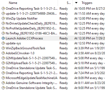 The trigger is “Runs every 6 hours indefinitely”. It is so DIS-GUSTING. - Winzip – runs every day. But it shows its AD bi-weekly to me.