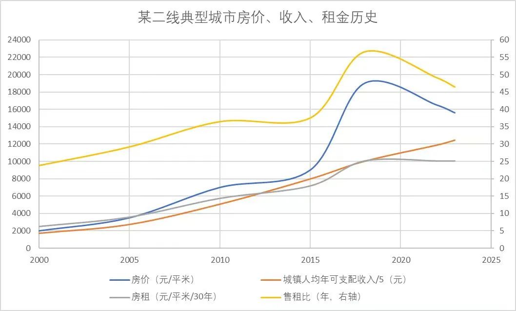 可见人均年可支配收入除以5,或者房子每平米年租金的30倍,是每平米房价的合理值。当房价涨得大大超出了合理值时,就是产生了泡沫,日本1990年左右产生了泡沫,中国2018年左右产生了泡沫。当泡沫到达价格相当于合理值的约2倍时,泡沫会破,随后房价会大跌。中国目前还没跌完,参考日本的历史情况,会跌到合理值附近,甚至合理值之下,也就是跌到每平米房价小于每平米年房租的30倍,房价才会重新上涨。